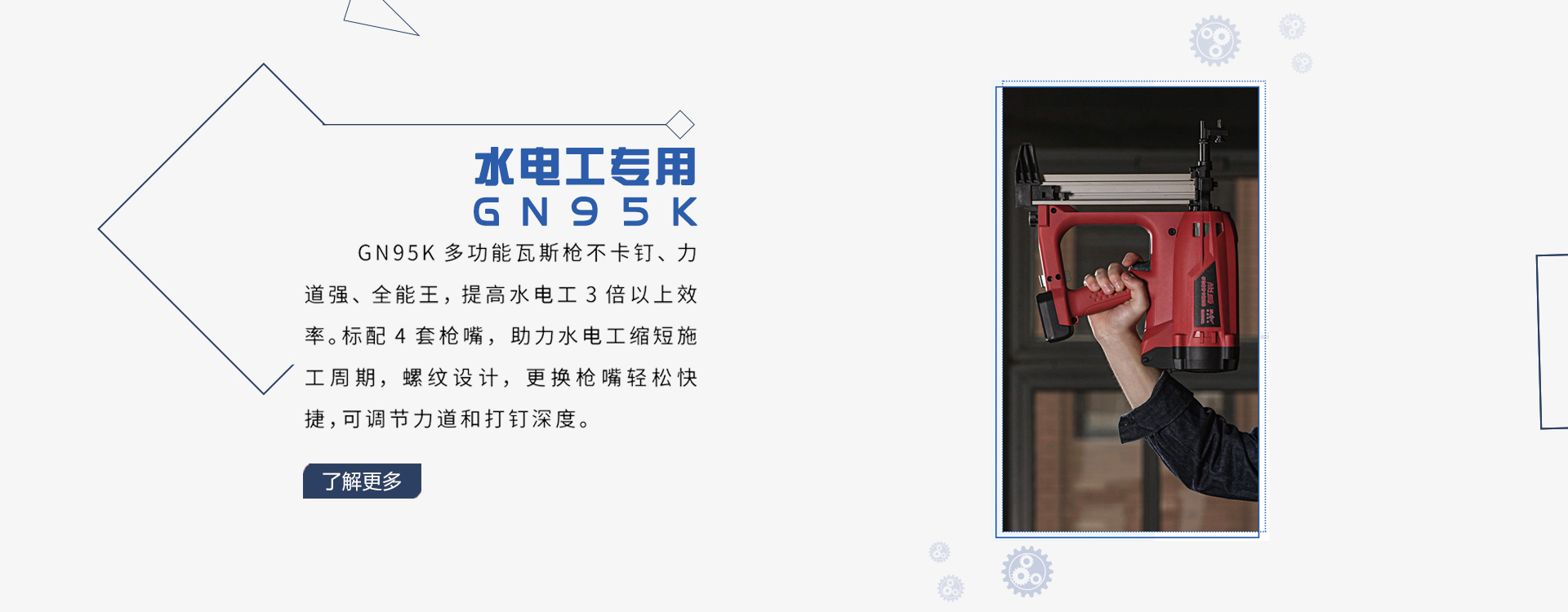 钢钉枪需要使用压力在0.40到0.70Mpa之间的气泵,若是电动的钉枪,那么可以用220V的电源,需要和电动打气泵来配套使用。它的使用对动力的来源都有着一定的要求,导气胶管的长度也有着较高的标准。注意事项:1:木工气钉枪适用于一般的空气压缩机,气压调整至0.45-0.75MPa。2:配用三件套的空气供应装置(空气滤波器...